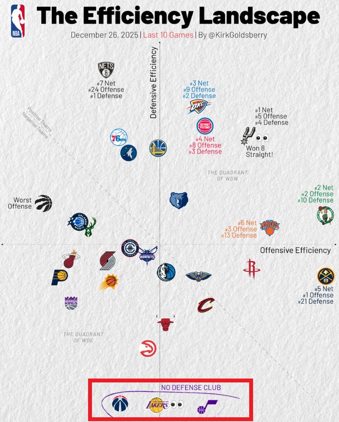 當然了,勇士隊的庫里也是打出了少有的瘋狂賽季,是目前全聯(lián)盟得分榜前十名單中唯一一個30+歲的球員,而歸根結(jié)底,是球隊陣容太老,并且沒有第二個穩(wěn)定的得分點,再加上格林時不時作個妖,勇士隊本賽季能沖進季后賽就是勝利了;火箭的杜蘭特進攻端依舊犀利,近期雖然接連輸給西部倒數(shù)前五的全部球隊,創(chuàng)造NBA恥辱紀錄,但杜蘭特關鍵時刻的得分能力確實還沒被火箭利用起來,不過,伴隨著申京的受傷,球隊空間突然打開了,連續(xù)收獲兩場酣暢漓漓的大勝,算是打破了此前的質(zhì)疑。