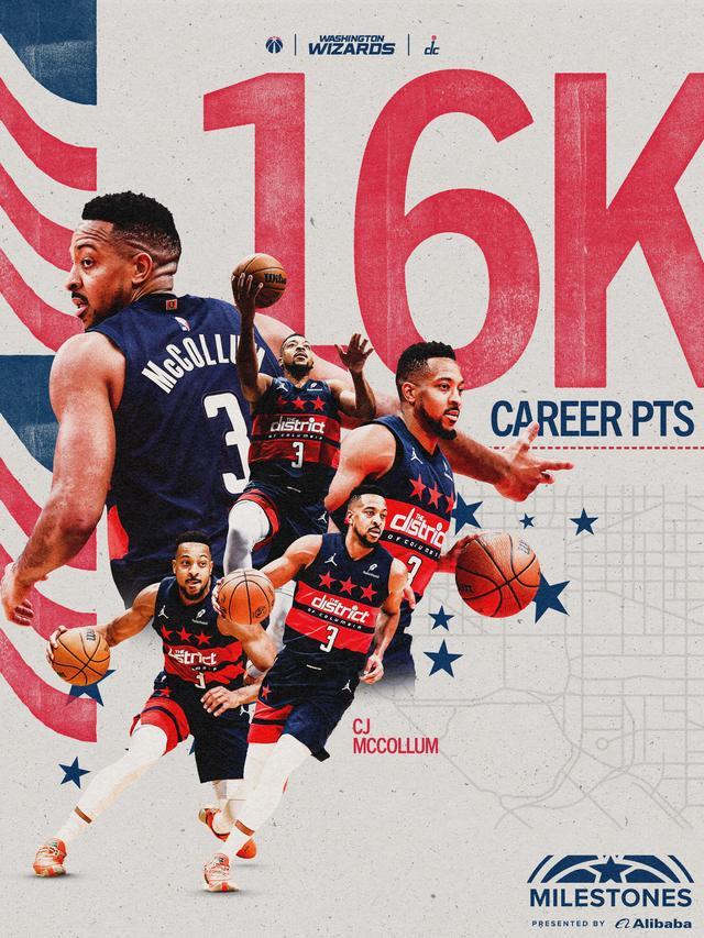 奇才后衛(wèi)CJ-麥科勒姆本場(chǎng)比賽出戰(zhàn)32分鐘,15投7中,得到18分4籃板4助攻的數(shù)據(jù)。